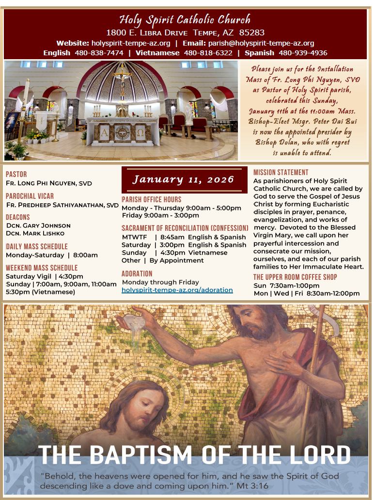 The Phoenix Chinese Catholic Community is excited to announce our 2026 Monthly Chinese Masses. We warmly invite you to join us. If you have any questions, please get in touch with Sophia at 623-869-6848 or